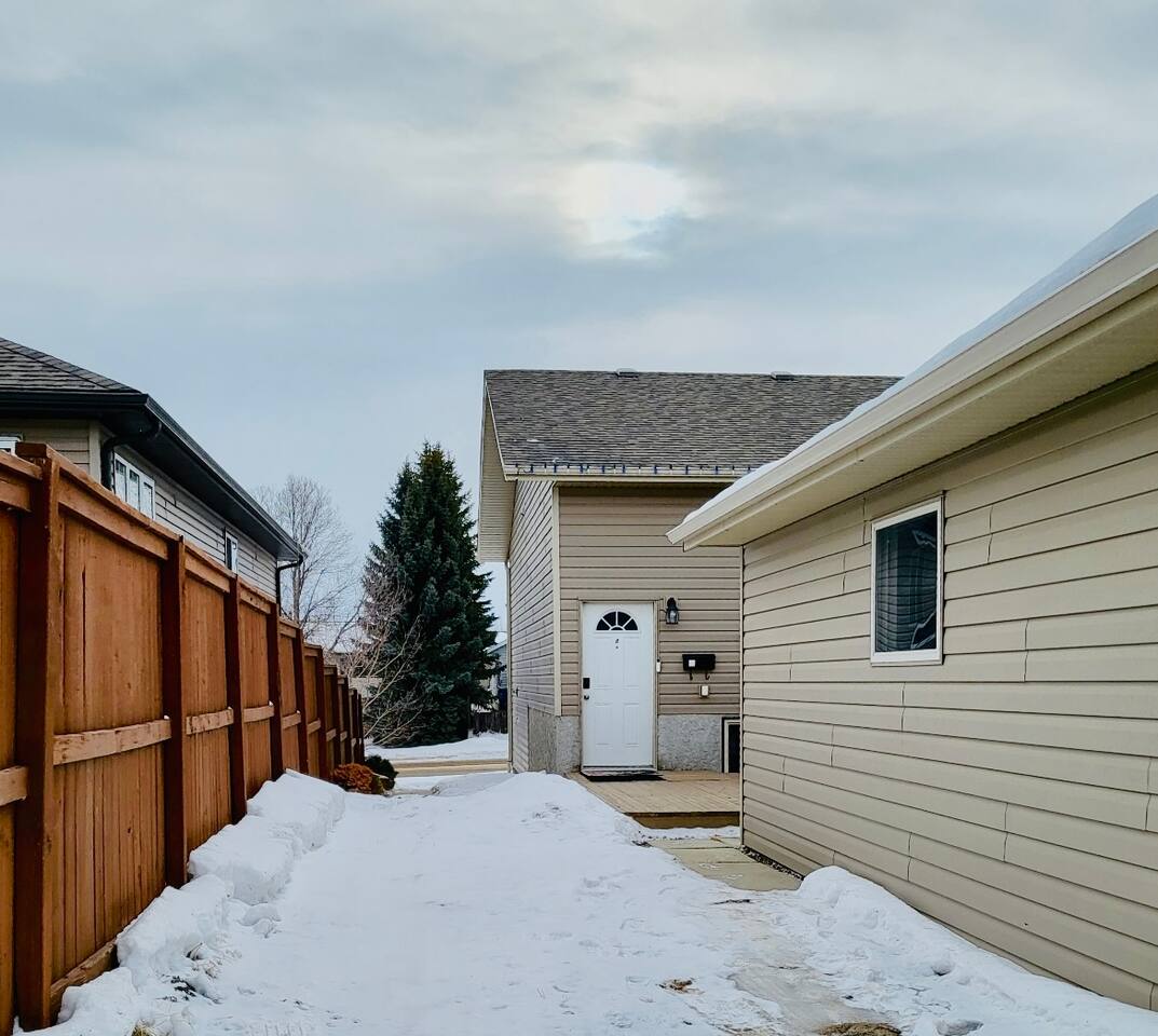 Bright, modern 2 bedroom, 1 bathroom fully stocked basement suite in Victoria Park, Camrose, just minutes from Main Street, walking trails, and Mirror Lake. Enjoy a large deck, BBQ, and outdoor seating, perfect for relaxing outdoors. Convenient private parking at the rear next to the garage, plus street parking at the front and side. A great choice for those seeking a comfortable, well-located stay with everything you need for a seamless visit!