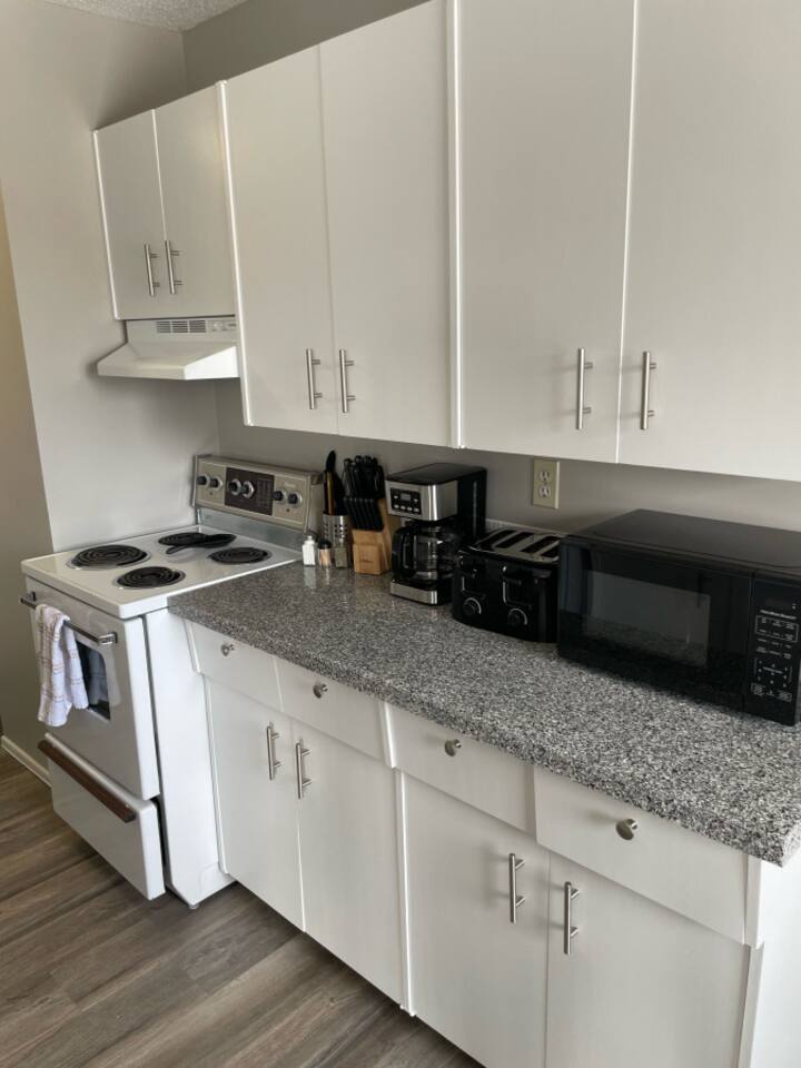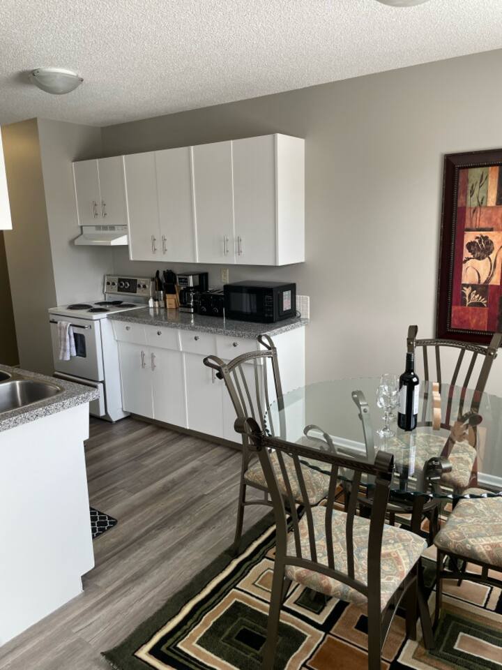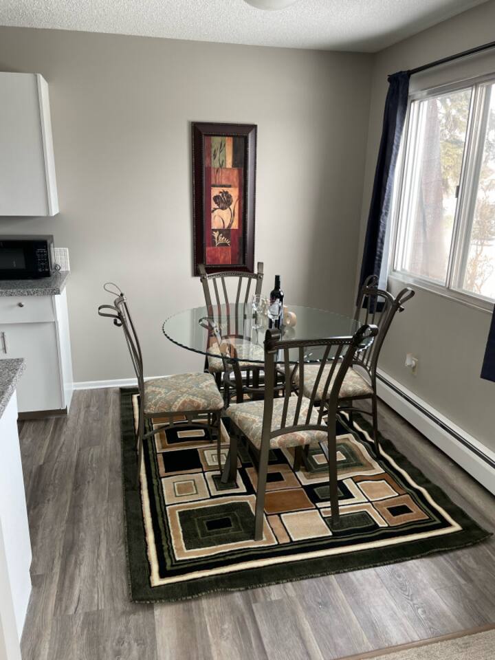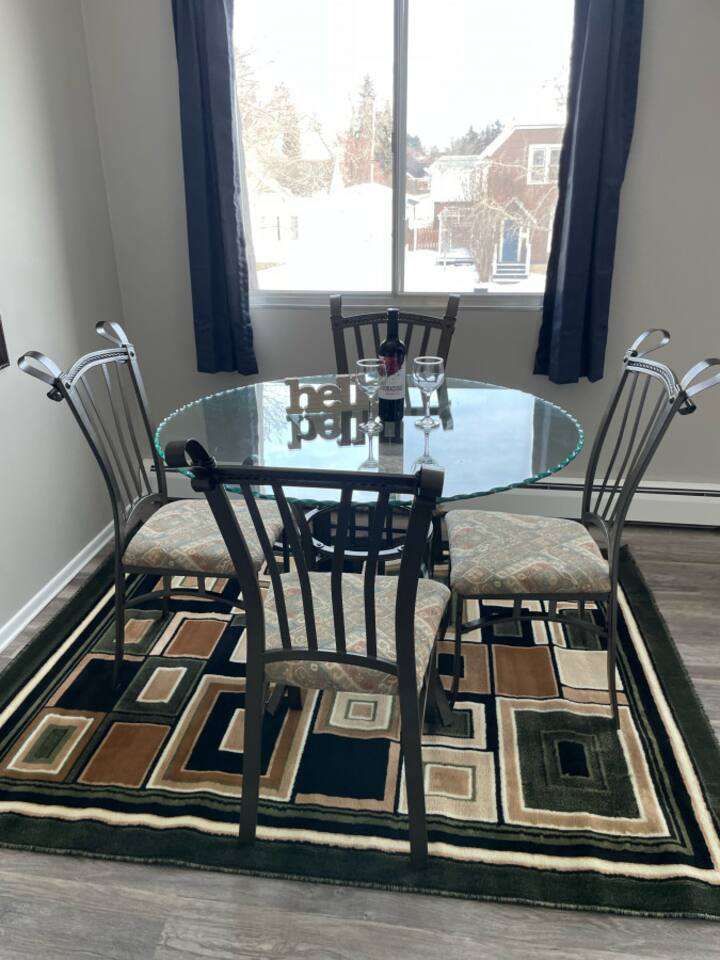 This top floor, two bedroom one bathroom apartment offers modern comfort and convenience, featuring two queen beds, a fully stocked kitchen, portable A/C, Disney+, and board games. The apartment includes a balcony with outdoor furniture, providing beautiful views. Located just two blocks from the University of Alberta Augustana campus and four blocks from St. Mary's Hospital, it’s also close to Mirror Lake, walking trails, shopping, and the Arts Center. Additional amenities include a vending machine and coin laundry on the bottom floor. Ideal for students, healthcare professionals, and those seeking a central location in Camrose.