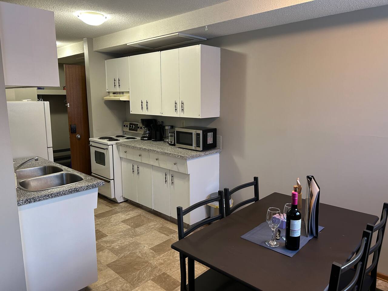 Welcome to our private, south facing one bedroom, one bathroom apartment on the main floor. Enjoy keyless entry for your convenience. The apartment features a fully stocked kitchen, Disney+ and board games for entertainment. The living room has a futon for extra sleeping space. Coin laundry and a vending machine are located in the laundry room on the same floor. The main floor location offers easy access and is close to the UofA, St. Mary's Hospital, Mirror Lake, walking trails, and downtown.